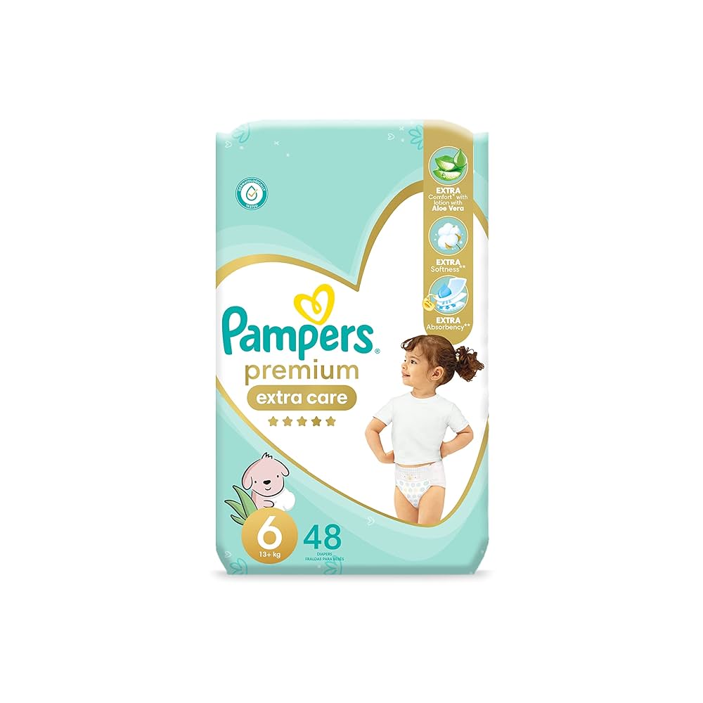 حفاضات بامبرز بريميوم اكسترا كير مقاس 6، مع لوشن بخلاصة الصبار، 48 حفاضة اطفال