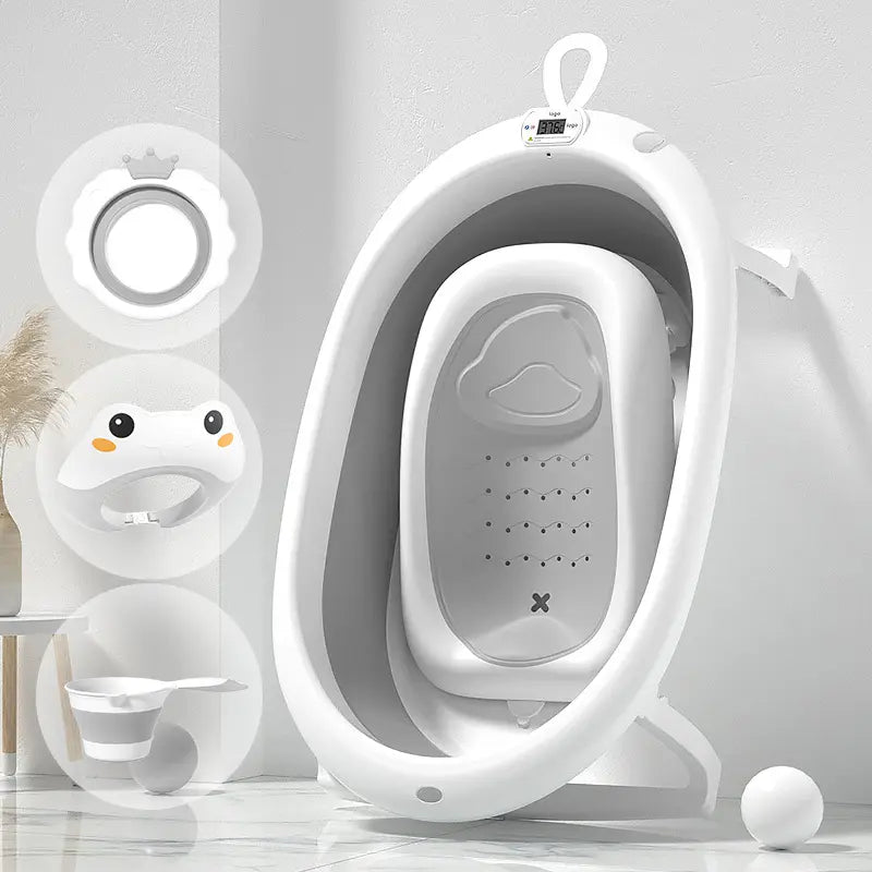 مجموعة حوض استحمام اطفال قابلة للطي تجمع بين البساطة والأناقة، حوض استحمام للاطفال قابل للطي مصنوع من البلاستيك الأبيض مع بطانة مطاطية رمادية تضمن السلامة، يأتي مع قابس مطاطي صغير لسد الحوض ومقبض لحمل الدلو بسهولة، مجموعة حوض استحمام حل مثالي