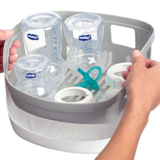 The immune systems of newborns are still developing so it’s important to disinfect bottles, nipples, pacifiers and other feeding items. The Chicco® Microwave Steam Sterilizer is easy to use and fits in most types of microwaves. It’s BPA-free and PVC-free.