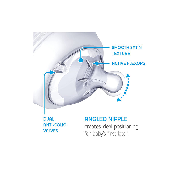 - The tilted teat creates an ideal position for the baby’s first attachment.