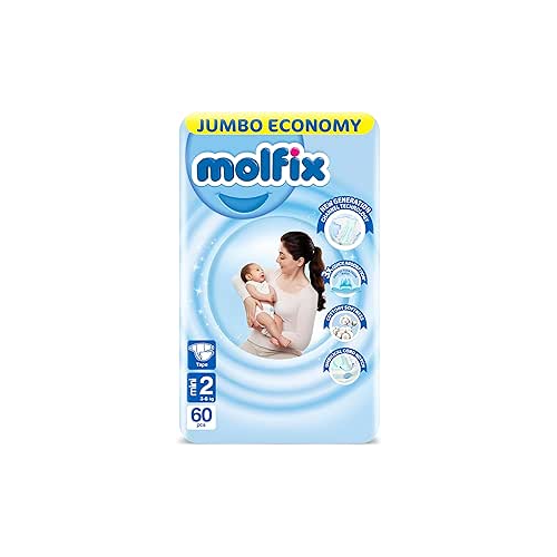 The Molfix Diapers SIZE 2 - Jumbo Economy Pack 60 provides ultimate comfort and protection for your baby. With 60 diapers in each pack, you can trust that your little one will stay dry and happy. These high-quality diapers are perfect for active babies and offer leak-proof and soft materials for a comfortable fit.