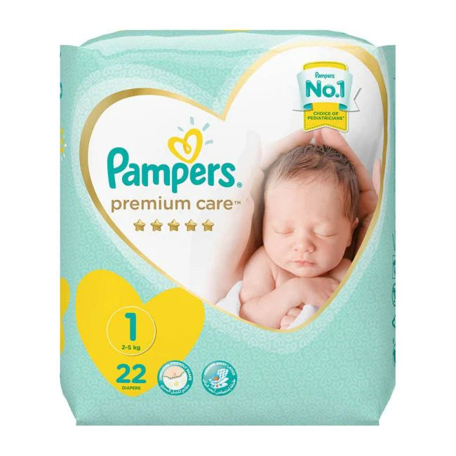 Pampers Premium Care Diapers, Size 1, New Born - 22 Diapers